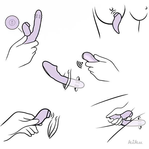 როგორც ვიბრატორის, ისე პულსატორის ჩასართავად აჭერ S ღილაკს 2 წამით. ვიბრატორს აქვს ვიბრაციის 7, მოძრაობის 7 და სიმძლავრის 3 რეჟიმი. სიმძლავრის რეჟიმის ან/და ინტენსივობის შესაცვლელად აჭერ S ღილაკს ერთხელ, სწრაფად. თუ გინდა რომ ვიბრატორის თავს დააწყებინო ზევით-ქვევით მოძრაობა და ტრიალი, მაშინ იგივე S ღილაკს აჭერ ორჯერ სწრაფად. წინ-უკან მოძრაობის გააქტიურება შეგიძლია მაშინაც, თუ პულსატორზე დააჭერ შესაბამის (ზედა) ღილაკს. როგორც ვიბრაციის, ისე მოძრაობის შემთხვევაში შესაძლებელია ინტენსიურობის რეგულირება S-ზე ერთხელ დაჭერით. თუ გსურს რომ ეს მოძრაობა დააპაუზო და გადახვიდე პულსატორზე, მაშინ პაუზისთვის პულსატორზე ორჯერ სწრაფად აჭერ ზედა ღილაკს.